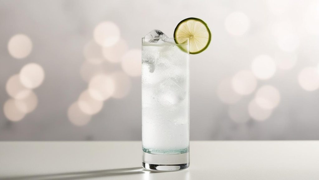 ポイント: ライムは、絞るだけでなく、皮の部分をグラスの縁にこすりつけたり、ツイストしてグラスに落とすことで、柑橘系の香りがさらに引き立ちます。また、トニックウォーターは冷やしておくことで、より爽快な味わいになります。爽快なジントニックの完成イメージ